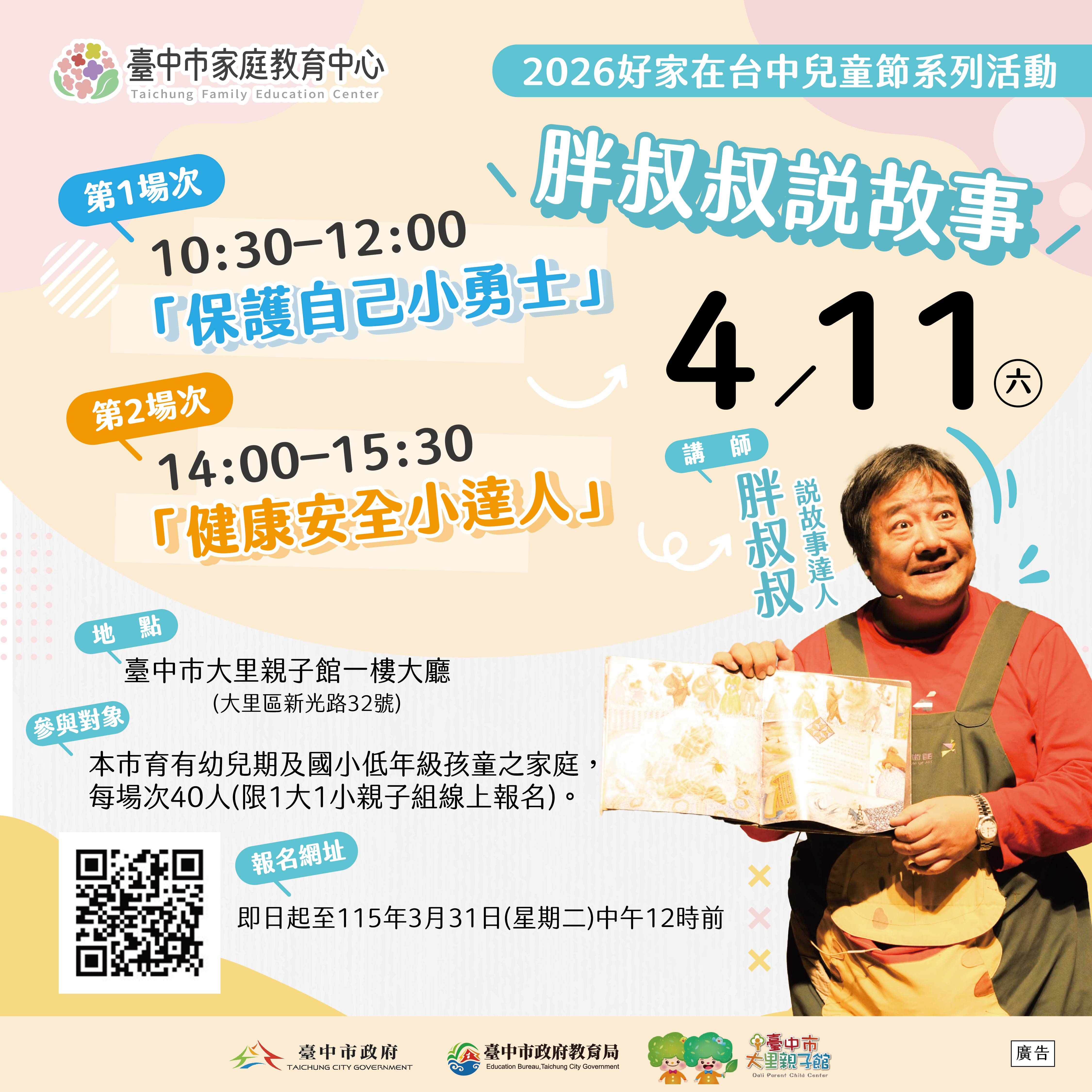 臺中市家庭教育中心「2026好家在台中兒童節系列活動」暨「115年度第二季親職教育課程」